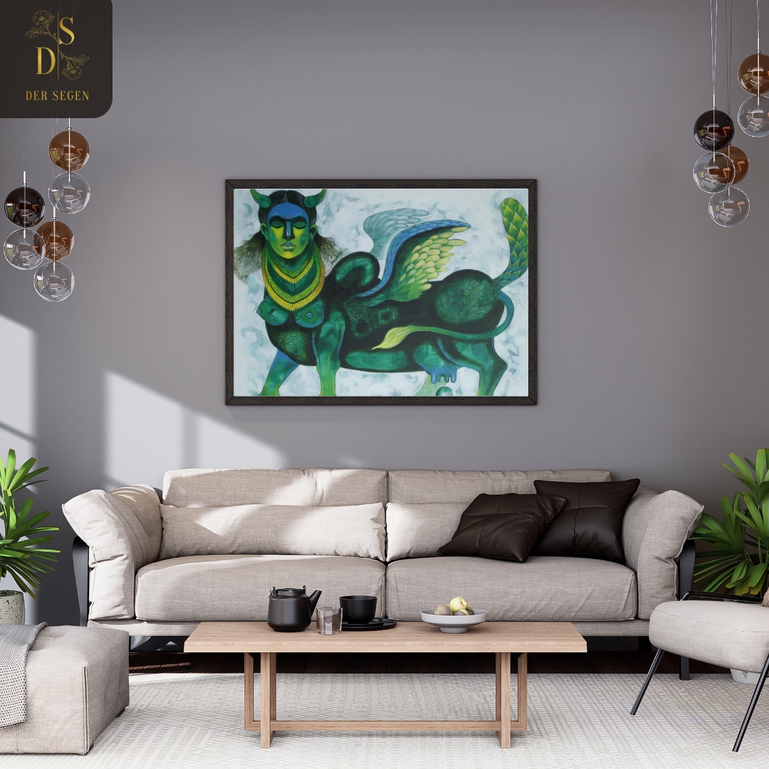 wish-fulfilling cow revered in Hindu tradition. This exclusive art painting for sale embodies