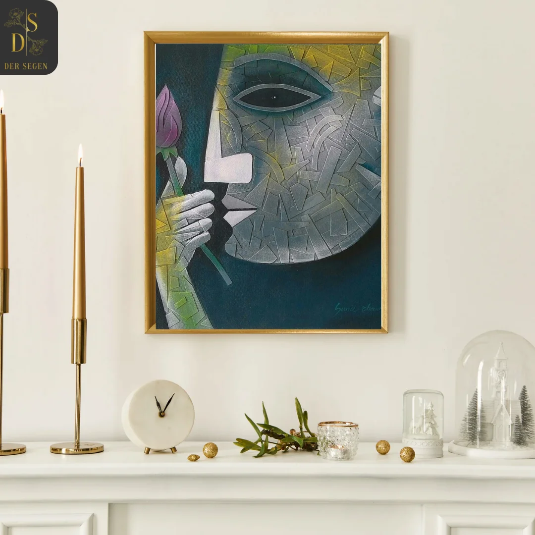 Man with a bloom contemporary figurative painting inspired by geometry, symbolism, and inner calm
