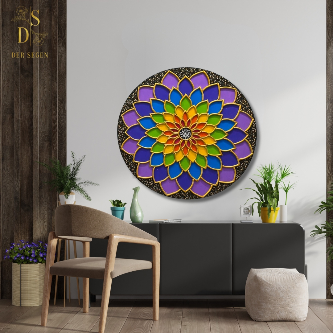 through repetition and harmony. The mandala structure guides the eye inward, encouraging