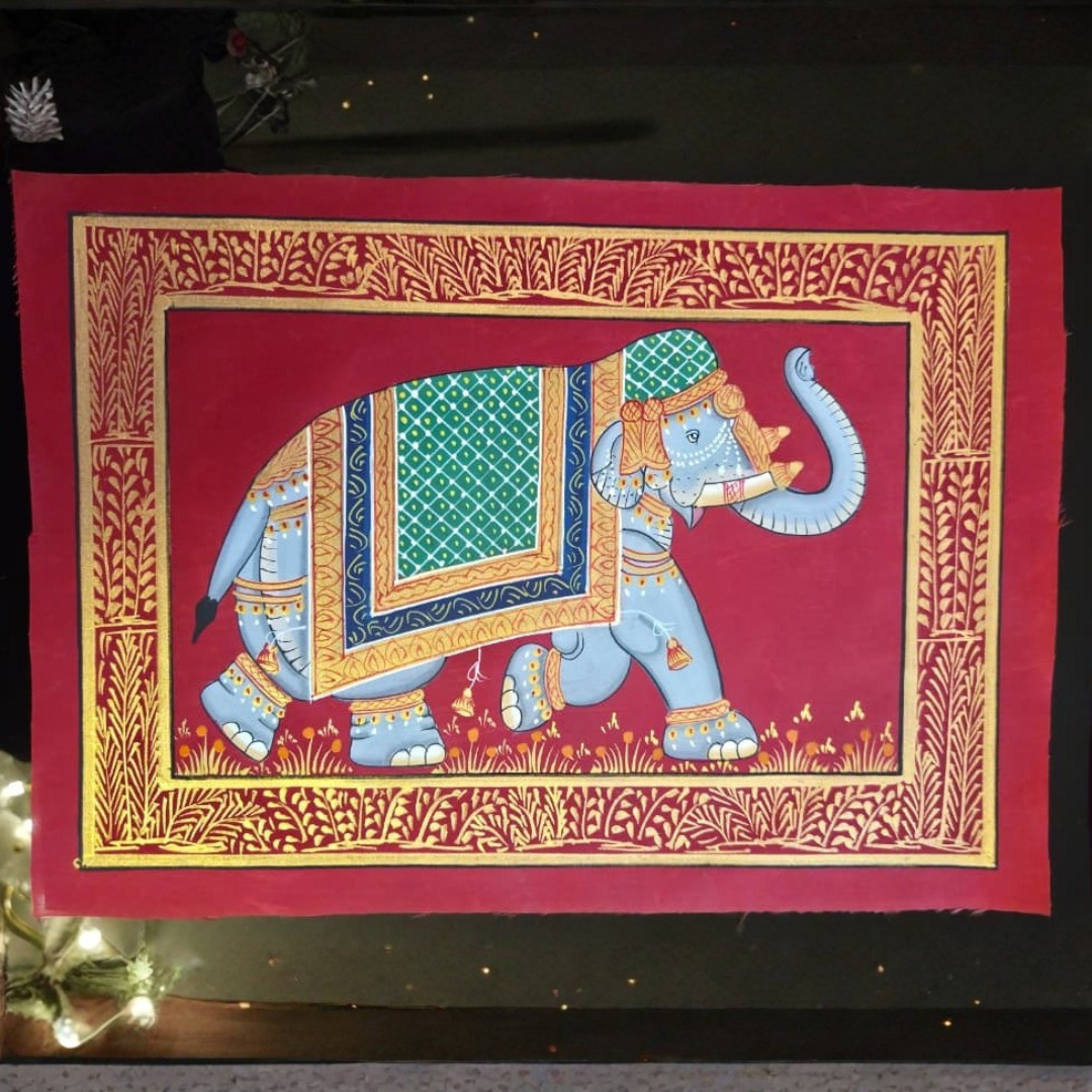Too Royal to Rush is a handcrafted Indian miniature painting set that celebrates calm strength, dignity, and royal composure. Featuring a richly adorned elephant captured in a poised, unhurried stance, this artwork reflects the timeless philosophy of grace over speedâan idea deeply rooted in Indian royal symbolism.